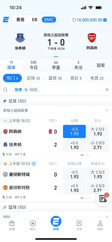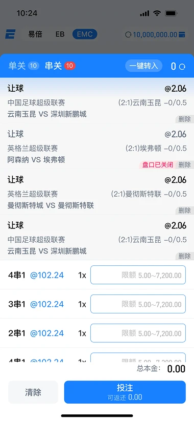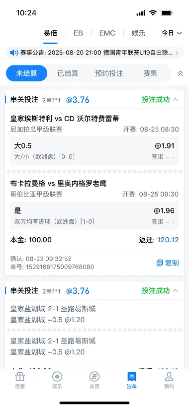 活动期间,投易倍/EB体育场馆的早盘2025-2026五大联赛冠军盘注单,即可获得投注额50%的返还彩金,最高1288元!详情请查看官网活动页面。