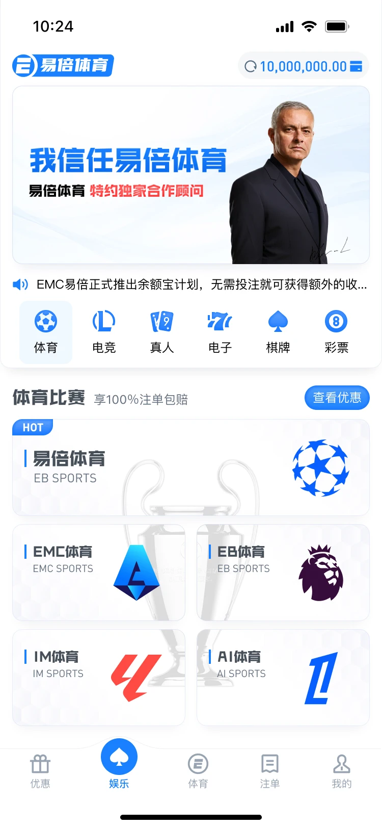 每周于【易倍体育】【EMC体育】【EB体育】场馆投注指定赛事,享赛事单场馆总负盈利100%全额包赔!本活动无需申请,赛事结束12小时后自动结算包赔彩金。详情请查看官网活动页面。